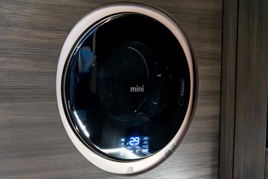 下方是一台进口3.0kg滚筒洗衣机,轻松解决户外洗衣问题。