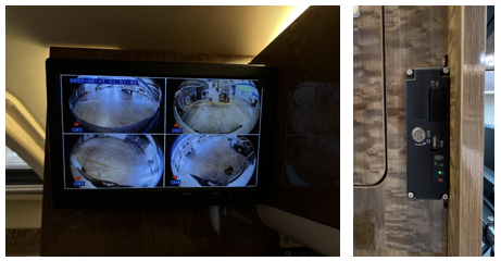 主驾驶的背面还装有四路监控,10寸液晶大屏,高清显示,360度无死角看护你的爱车;且摄像头隐藏安装,美观、安全;可以实时监控,支持手机远程查看。