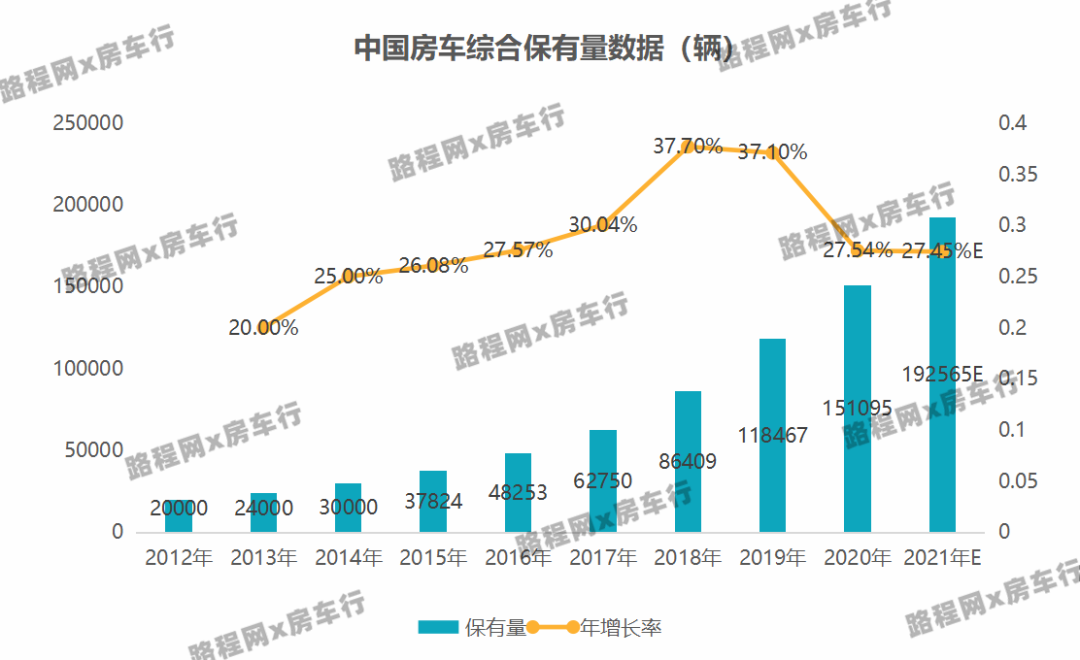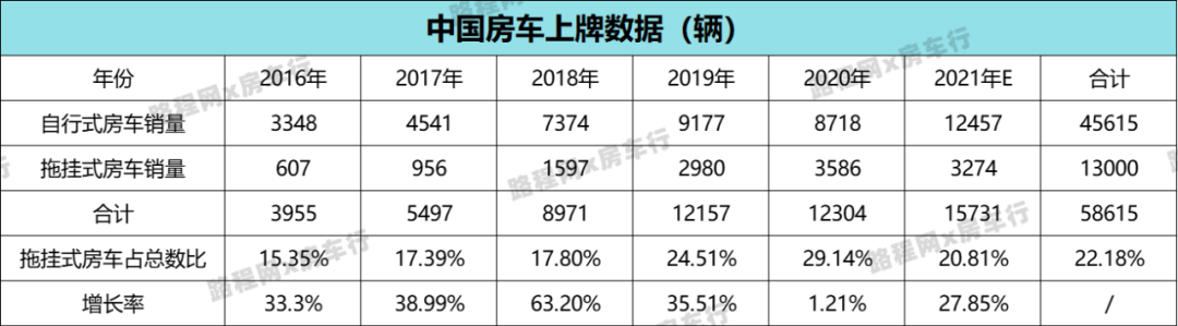 年度数据上,从2016年-2021年,国产房车市场年度销量平均每年增加约33.34%;保有量方面,从2013年-2021年,中国房车综合保有量平均年增速为28.72%。