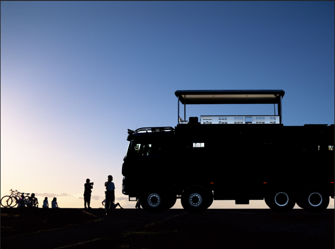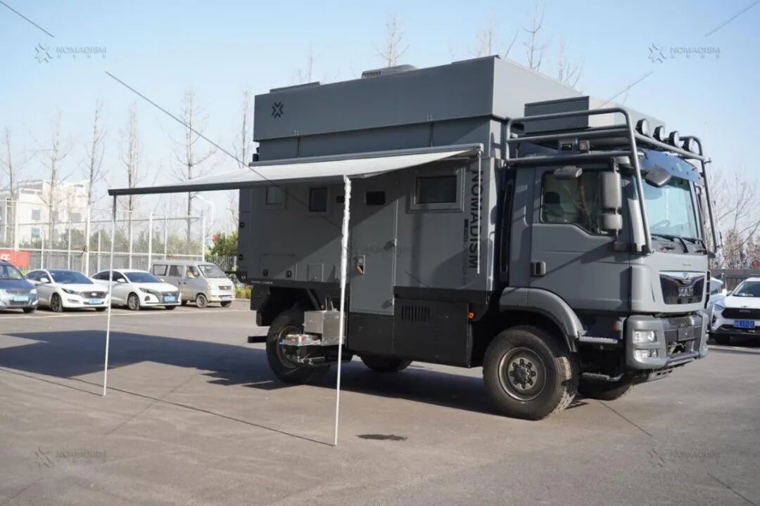 · 外部配置意大利进口遮阳棚、室外厨房、电动升降挂载系统(可以挂载越野摩托车)、专有后箱储物空间、18500磅越野专用绞盘等设施;