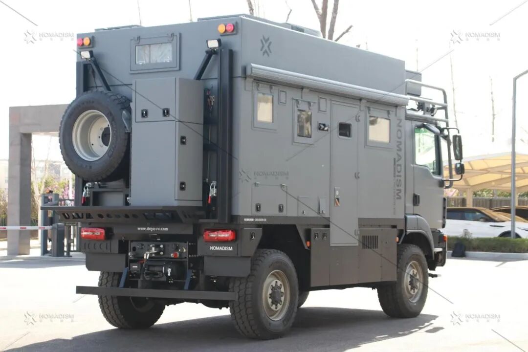 · 尾部配有备胎电动挂载系统方便更换车胎;