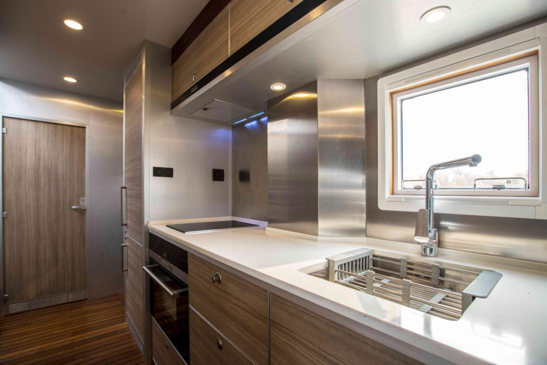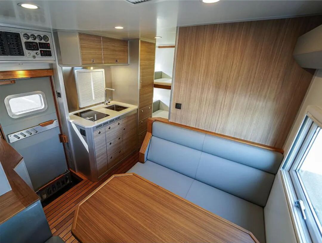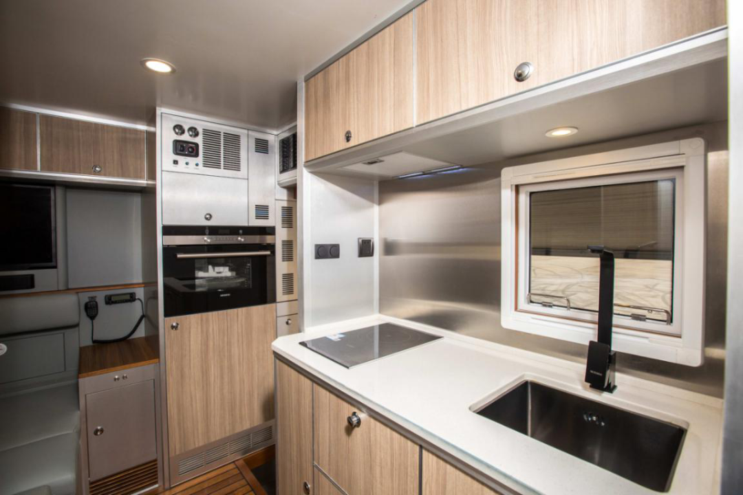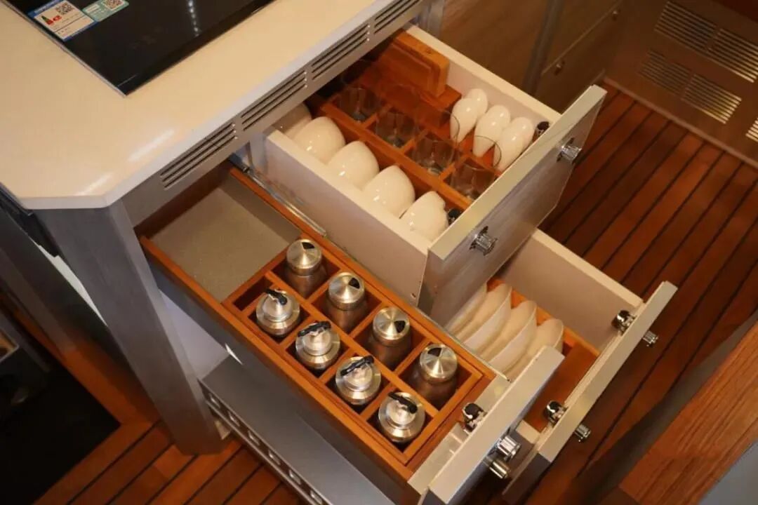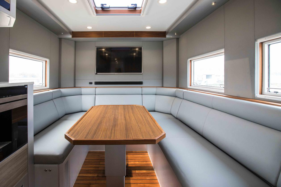 · 一键游艇飞桥开放式露台,360°宽阔视野,配置隐藏式75寸LED液晶电视+英国进口音响;