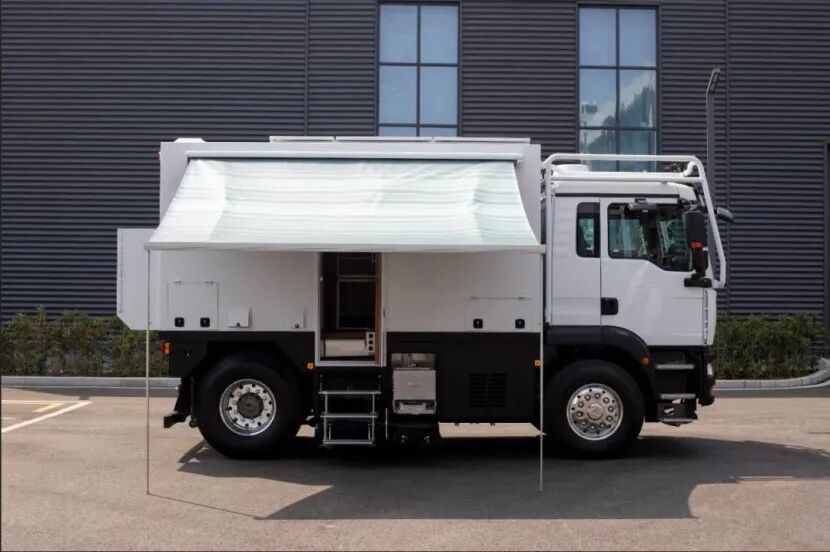 · 外部设有遮阳棚、外置储物空间、电动踏步、室外厨房等设施;