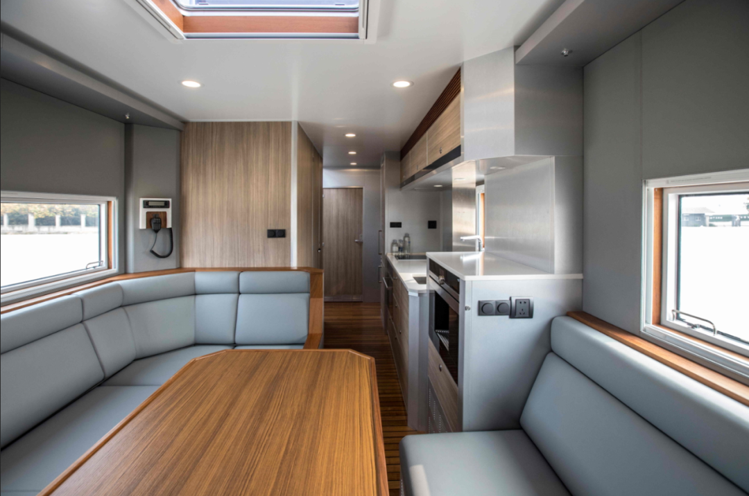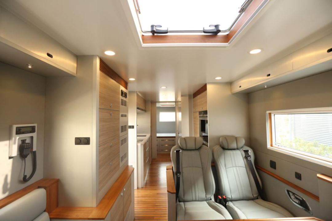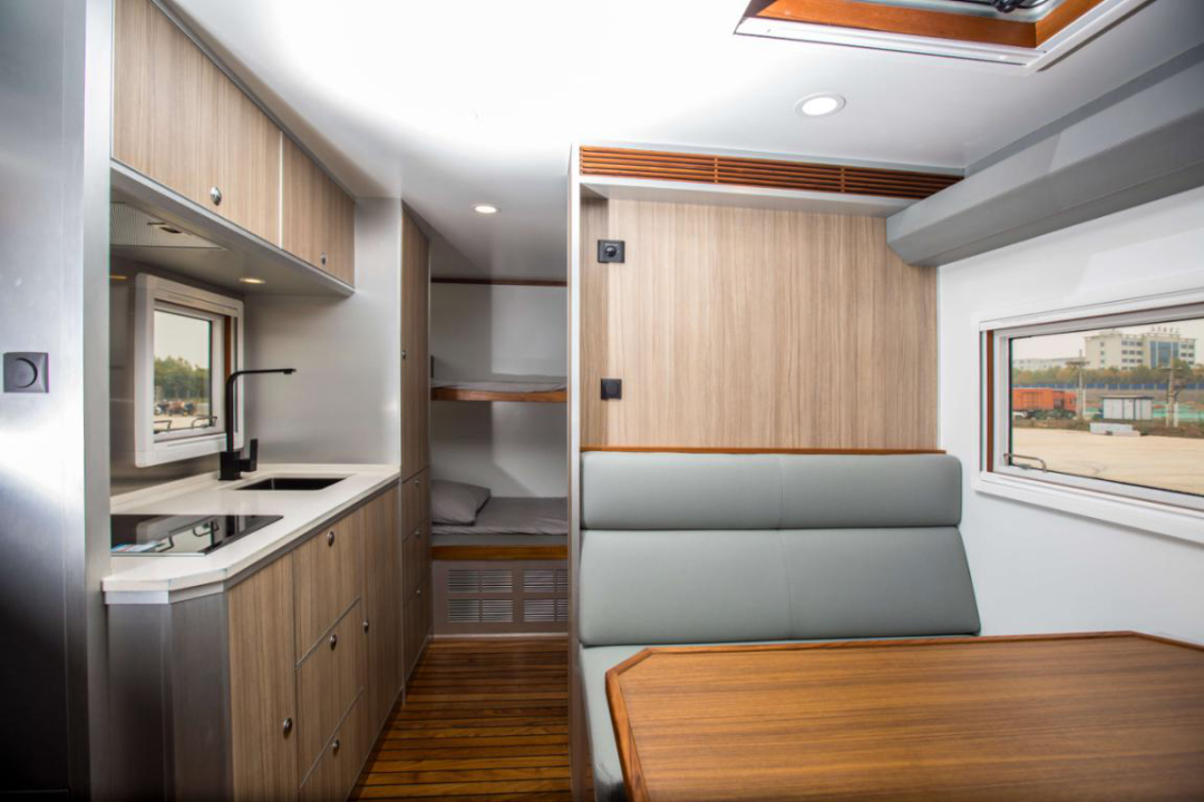 · 外部配置意大利遮阳棚、室外厨房、外置储物舱、铝合金自动踏步、电动绞盘等设施;