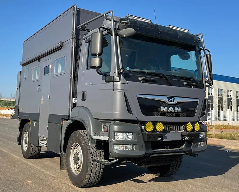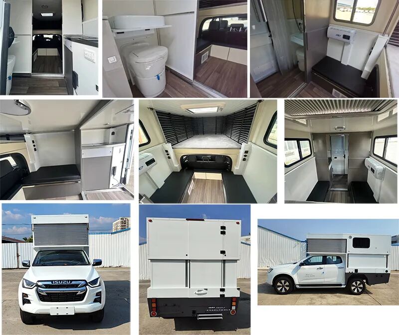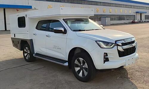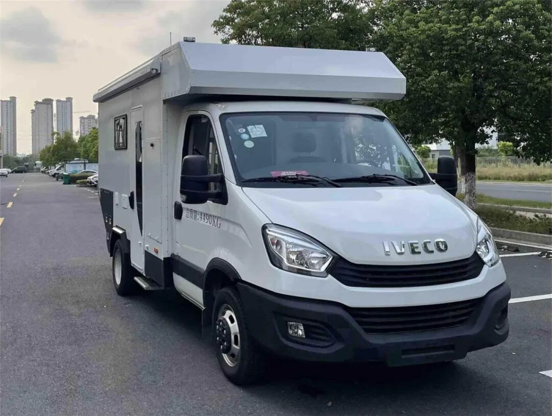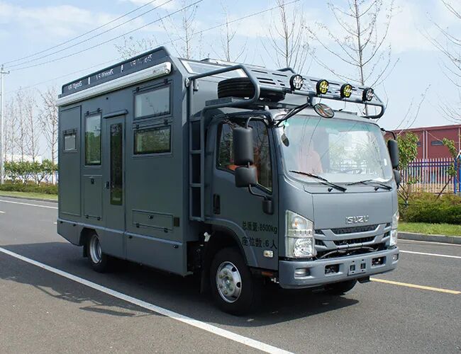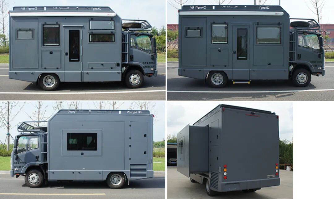 1、侧防护为裙边结构,材质为高强度铝合金,后防护材质为Q235A,断面尺寸(长×宽)mm:120×60,离地高度:490mm,连接方式均为螺栓连接;2、配备桌椅,厨具,睡具,卫生设施等旅居生活设施;3、仅选用该底盘3600mm轴距;4、该车型可选用底盘驾驶室后部开口配置进行改装;选装车头灯具,仅限人员在野外非道路状况下工作和生活照明使用;选装厢体顶部拓展机构,拓展机构仅在驻车状态时使用;车辆顶部可选装护栏、太阳能电池板。