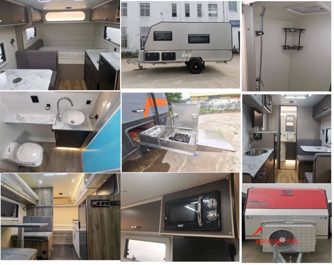 1.该车非乘用车,行驶过程中不载人;2.车内安装有床铺(沙发床),桌椅,储物柜,厨具,多媒体设施,卫生设施等旅居专用设备;3.选装制冷空调、内外音响、燃气热水暖风一体机、不同内饰风格、后置水箱、牵引器把手样式。4.中置轴挂车的牵引杆深入量(mm):45;中置轴牵引杆连接器最大负荷(kg):190;5.车厢顶部封闭且不可开启。6.悬架形式:双叉臂独立悬架。