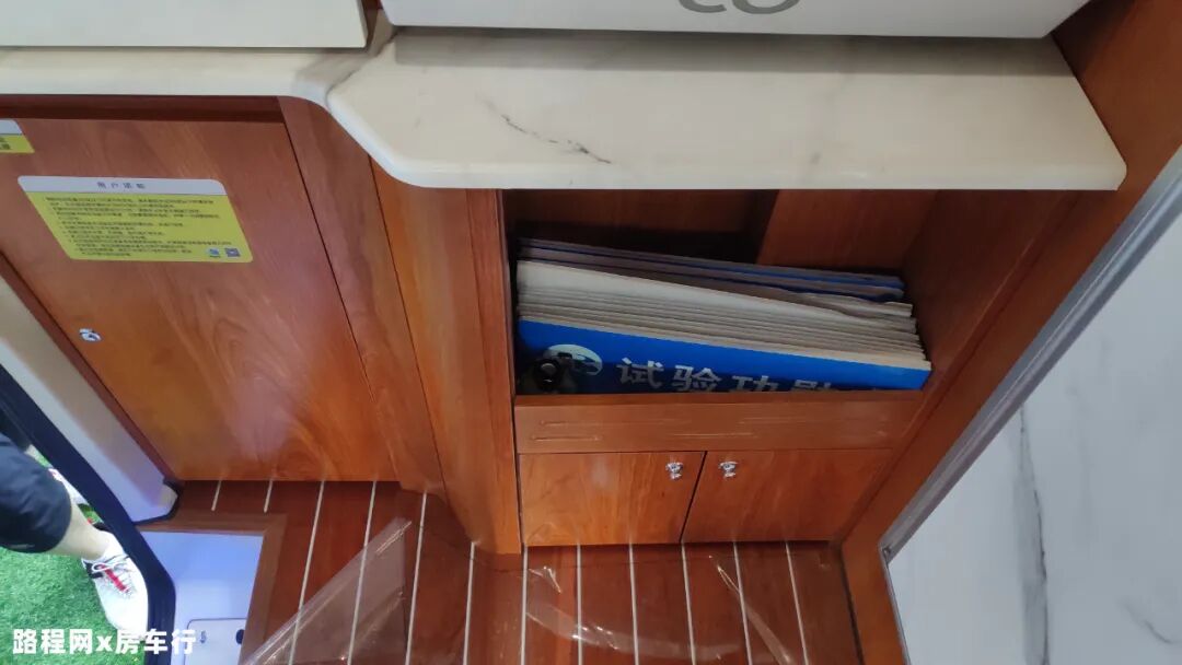 这款车的卫浴间也是一大亮点,折叠式的卫浴间在驻车升顶后只需十几秒即可组装完毕,实际上手操作时也是非常的简单;