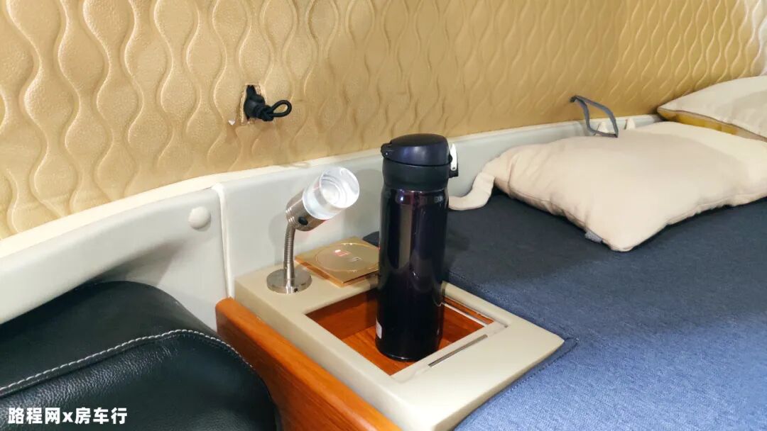 双人床两侧设有小型置物格、阅读灯、充电口等设施方便夜间休息时使用;