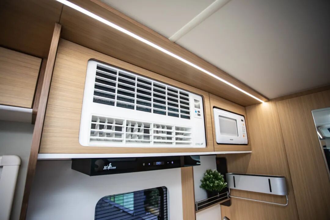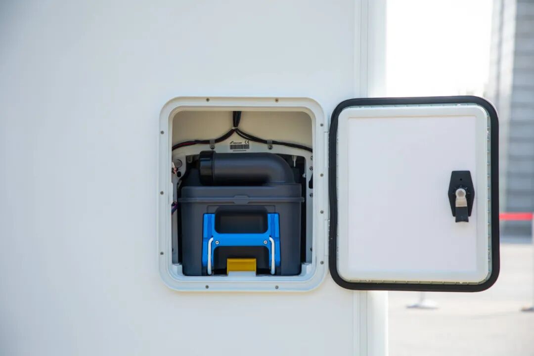 温度调节方面,整车搭载48V直流变频底置空调,相较常见顶置空调制冷更加迅速,能耗损耗更小,同时外机底置的设计有利于提升车辆通过性能,并大幅减少空调运行过程中产生的噪音;而暖风、热水系统则分别有:独立燃油加热器、换热式热水器,轻松满足小顶车型暖风与热水的需要,很适合多人旅行。