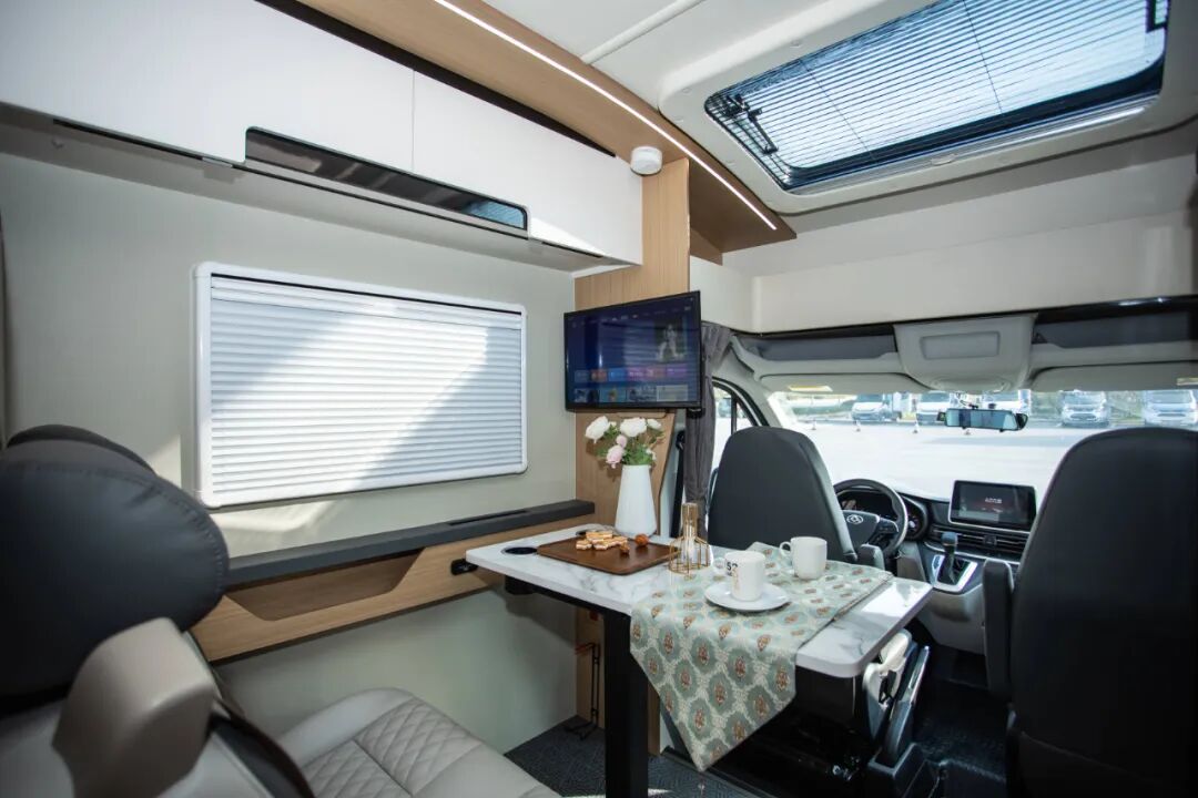 整体来看,这款小额头房车在整体设计上要更为灵巧,内部装饰也很贴心,还有48V电路可为用电提供持久的续航,对于那些看中C型房车舒适通透的生活空间,但又不喜欢大额头设计的用户来说,或许是不错的选择。