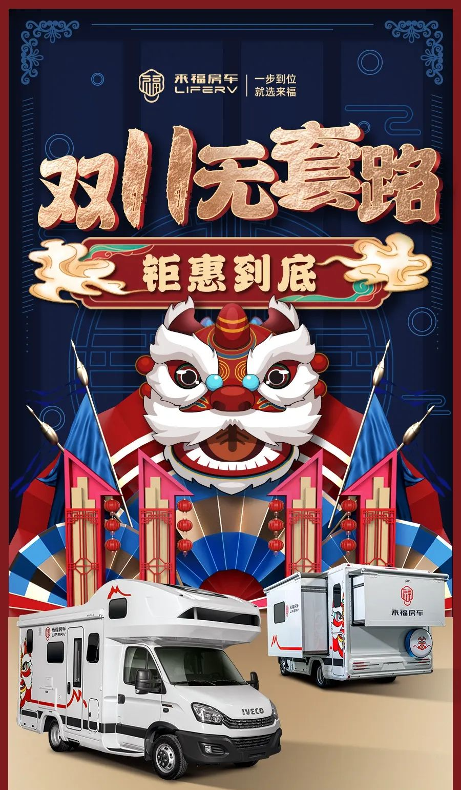 而来双十一即将来临之际,为回馈广大新老用户一直以来的信任与支持,来福房车特别推出史无前例的优惠活动,无套路,钜惠到底,助力房车选购一步到位。