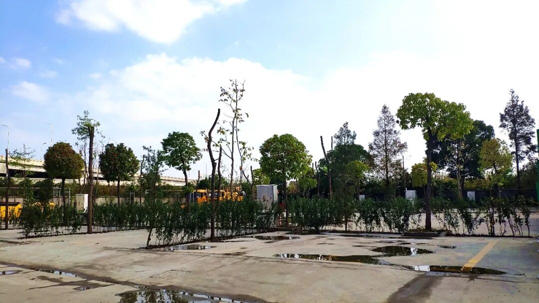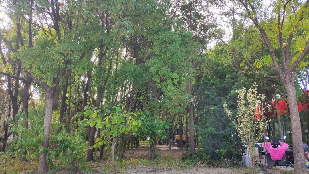 湖畔房车露营区位于展厅入口、停车场所经的T字路口旁(下图右侧位置),在未改造前,青草灌木丛生,绿意盎然,但为了让大家在房车露营时可以更亲近自然,房车行超市对该区域进行了大刀阔斧的改造升级。