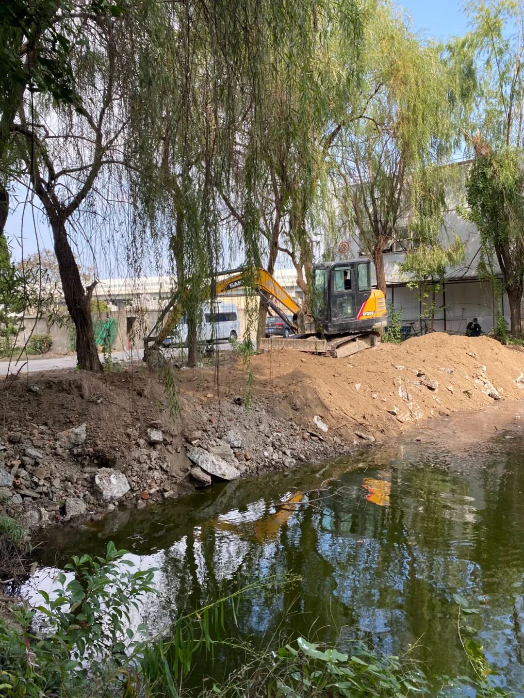改造工作首先拆除了湖畔旁边的围栏,然后派出我们的挖机大将对杂草灌木进行清理工作,施工师傅也为该区域的柳树进行了细致的修剪,让它们看起来更美观的同时,也不会遮挡观景视线,并有效避免杂枝可能蹭伤房车的情况发生。