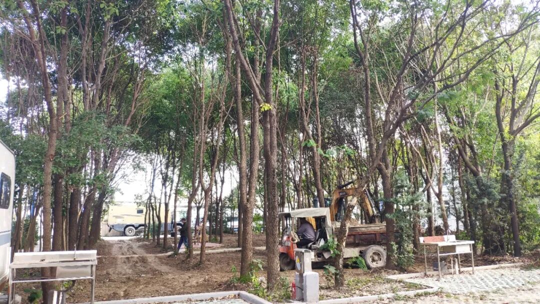 随后挖机与渣土车配合对该区域进行填充、平整工作,提升房车露营生活区域,后续装上水电桩,就可以为房车车友们提供依湖而居、择水而憩的别致露营体验啦!