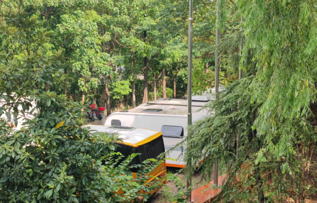 林荫周边设有充分的房车露营区域,水电桩也早已安放到位,可供多辆房车露营驻扎。