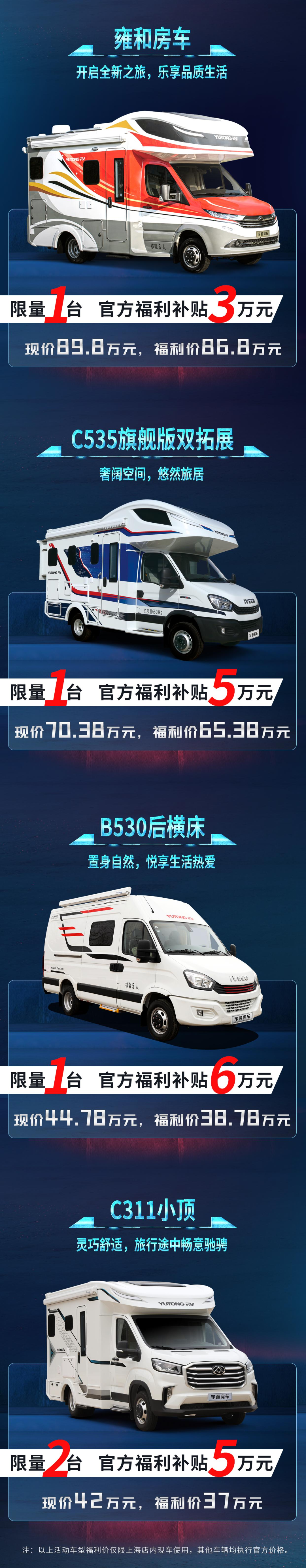 想看设计惊艳的房车?想看续航持久的房车?想看灵动舒适的房车?想......想......想......光想怎么能行?现在,机会来了!宇通上海直营店试营业暨皮卡房车品鉴会即将惊喜登陆潮酷魔都,众多车型一一登场,惊艳、持久、灵动舒适,一次带你看过瘾,还有丰厚福利等您拿!