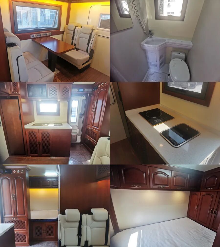 随底盘选装一种外观,车体内部按旅居卧室布置,配备卧具、厨具、卫生设施等专用装置。卧具可由座椅拼床而成。ABS型号:ABS9,ESP9,ABS生产企业:博世汽车部件(苏州)有限公司,博世汽车部件(苏州)有限公司。侧、后防护以车身结构代替,侧面车身下沿离地高310mm,后部车身下沿离地高320mm.,材料均为Q235钢。