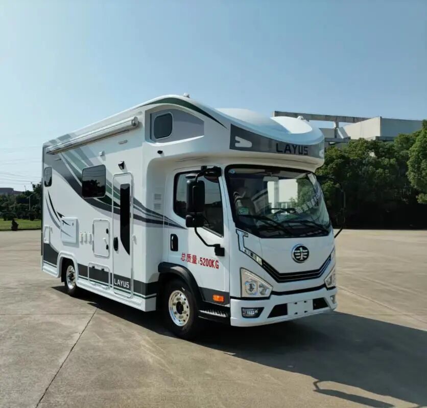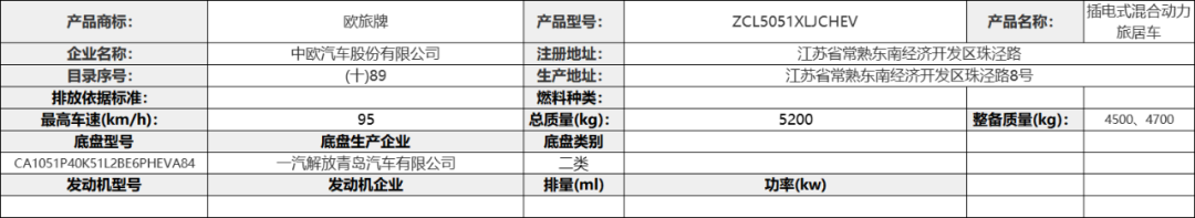 该车专用装置由卧具、餐具、卫生设施、座椅等组成,是用于旅居的专用车辆;车辆侧、后防护均采用裙边结构,后防护离地高420mm ;ABS防抱死制动系统生产厂家/型号:浙江万安科技股份有限公司/VIE ABS-II;该产品是新能源车辆,类型为插电式混合动力。储能装置种类/生产企业:锰酸锂蓄电池/天津荣盛盟固利新能源科技有限公司。该产品允许外接充电。驱动电机类型为永磁同步电机,驱动电机型号为TZ180XS016A,额定功率40kW,峰值功率为60kW,发动机最大净功率为CA4DB1-11E68(79kW);该车型可选装ETC车载装置。
