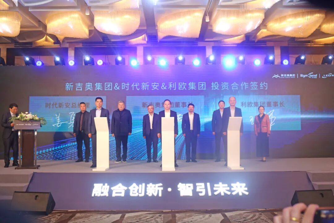 新吉奥集团董事长缪雪中先生、利欧控股集团董事长王相荣先生、时代新安总经理姜勇先生代表三方签约。