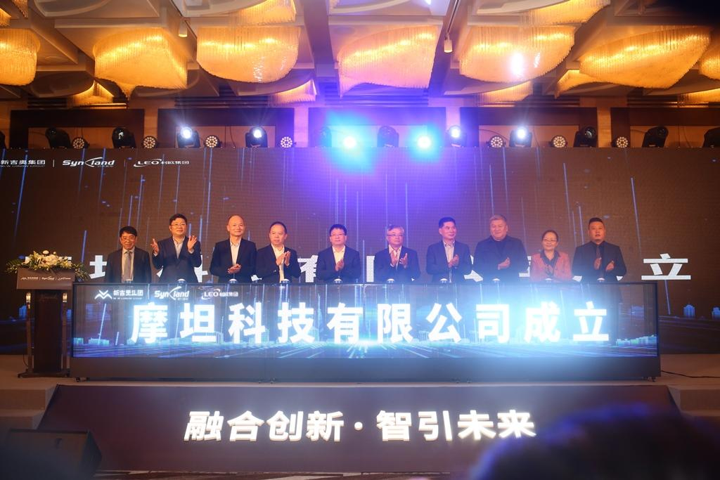 领导和嘉宾共同启动标志着“摩坦科技公司”正式成立的出发键