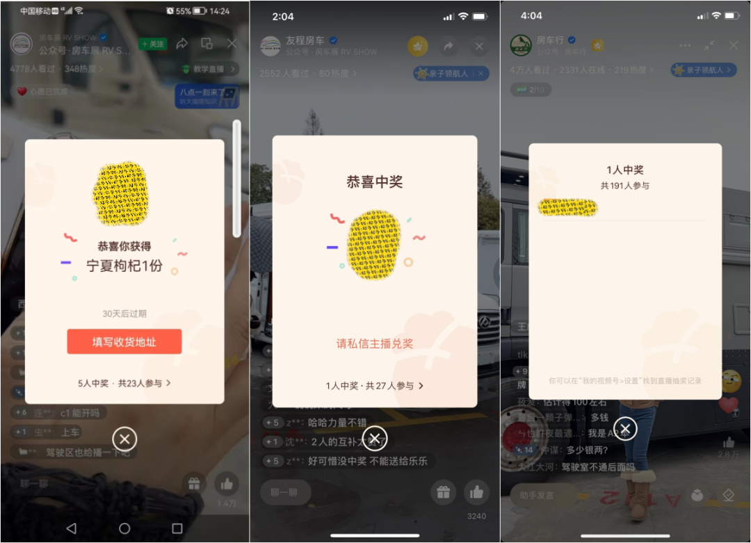 活动奖励包括但不限于:福袋、豪华房车模型(价值108元)、露营灯(价值218元)、五行灯(价值299元)、风扇灯(价值229元)、旅游实用手册(价值268元)、房车改装手册(价值99元)等,数量有限,千万不要错过哦~(具体奖品请以直播为准)