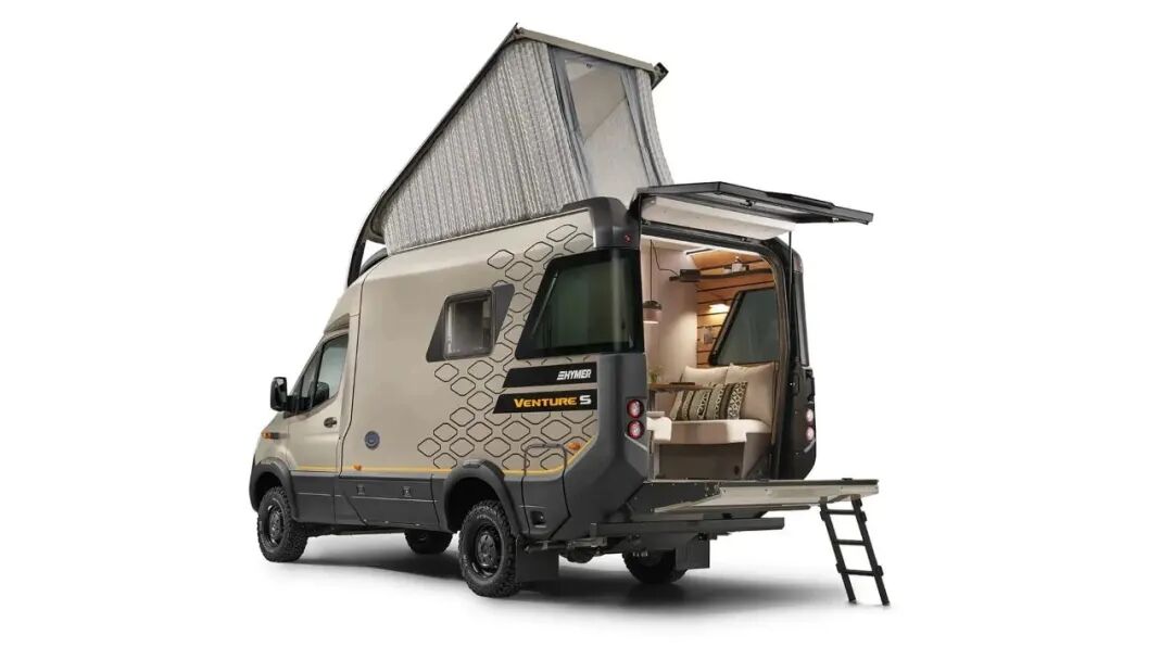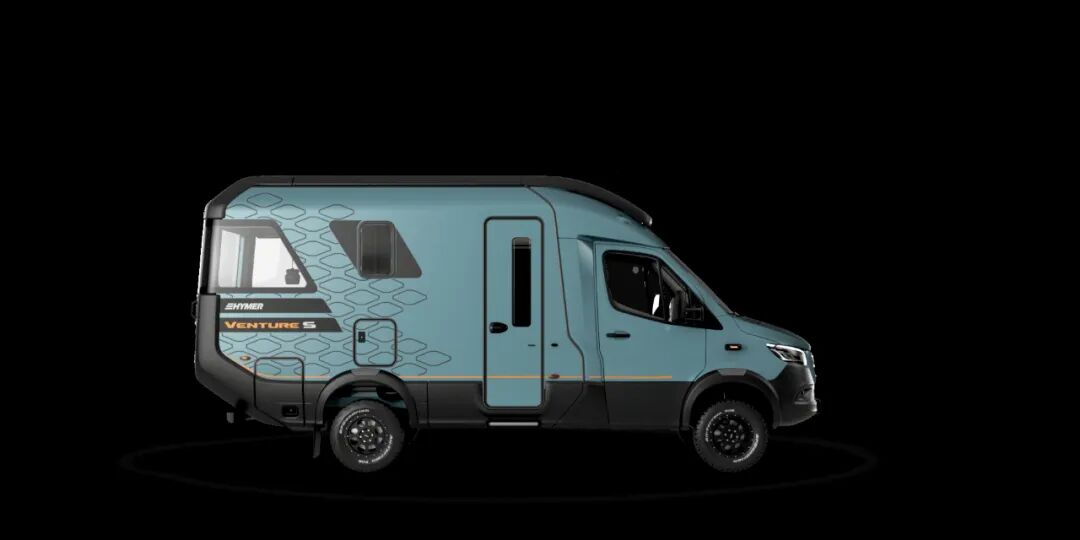 HYMER Venture S基于梅赛德斯-奔驰Sprinter底盘打造,一体式车头的设计,使车头与车身之间的过渡更加自然,不像传统的房车,车头与车身的分界线过于明显,让外观更有设计感,更新颖独特;外观配色有两种可选择,采用的都是巴斯夫开发的Raptor油漆,具有很好的抗石屑能力,让你在越野时无需担心石屑和污垢对油漆造成损害;PUAL车身外壳采用闭孔PU泡沫材质,具备出色的隔热性能,轮拱面板和选定的车身部件则采用了3D打印技术生产,赋予了极其坚固的橡胶品质。
