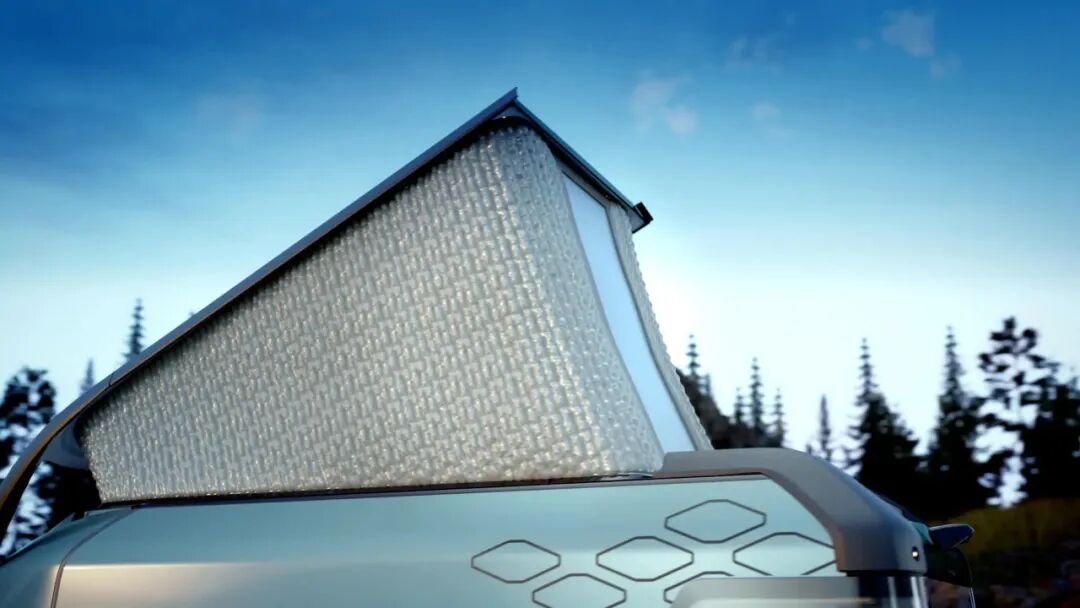 车身外侧安装了电动遮阳蓬,当你想要驻车露营时,就可以打开享受你的悠闲时光,也免去了安装收取帐篷的麻烦。