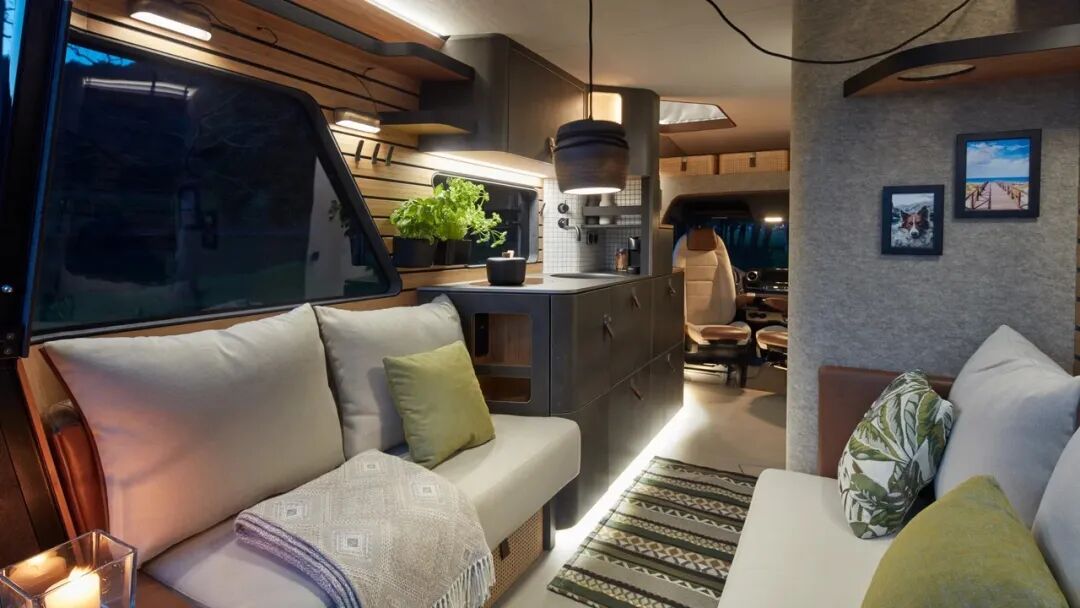 这款HYMER Venture S新概念房车是HYMER公司对现代房车生活的诠释,在内部布局概念上彻底改变了传统露营方式,更注重舒适性、功能性;不管是在灯光和内饰设计上,还是在家具的选择上,整体都透露出家的温馨舒适感。