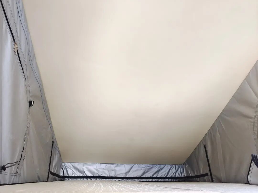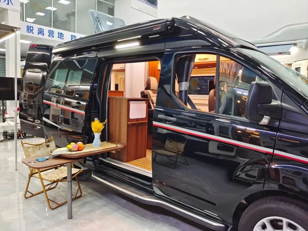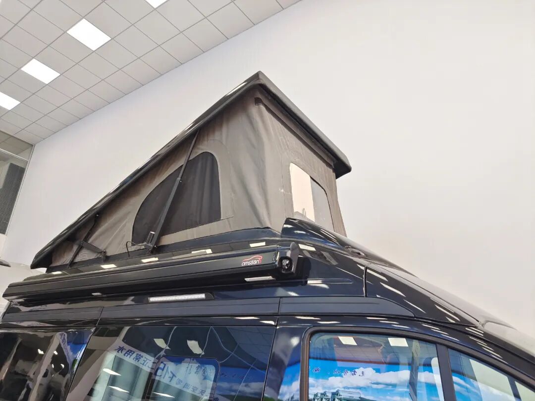 这款房车最大的亮点就在于可升顶的设计,房车升顶后就变成了一个小帐篷,可以提供一个小型的休息空间,平常可以在此处休息小憩;两侧内部还带有拉链,白天可以拉开,成为一个半封闭式空间,用全新的视角欣赏风景。