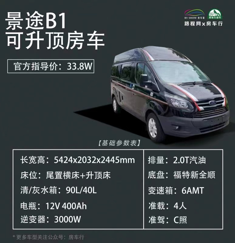 今天给大家介绍的这款景途B1升顶款房车,它在原先的基础上做了升级,增加了可升顶设计,使休息空间更加充足;不足2米5的车高极大的提升了通过性能,完全不惧限高问题,日常城市通勤、短途旅行都可以满足。