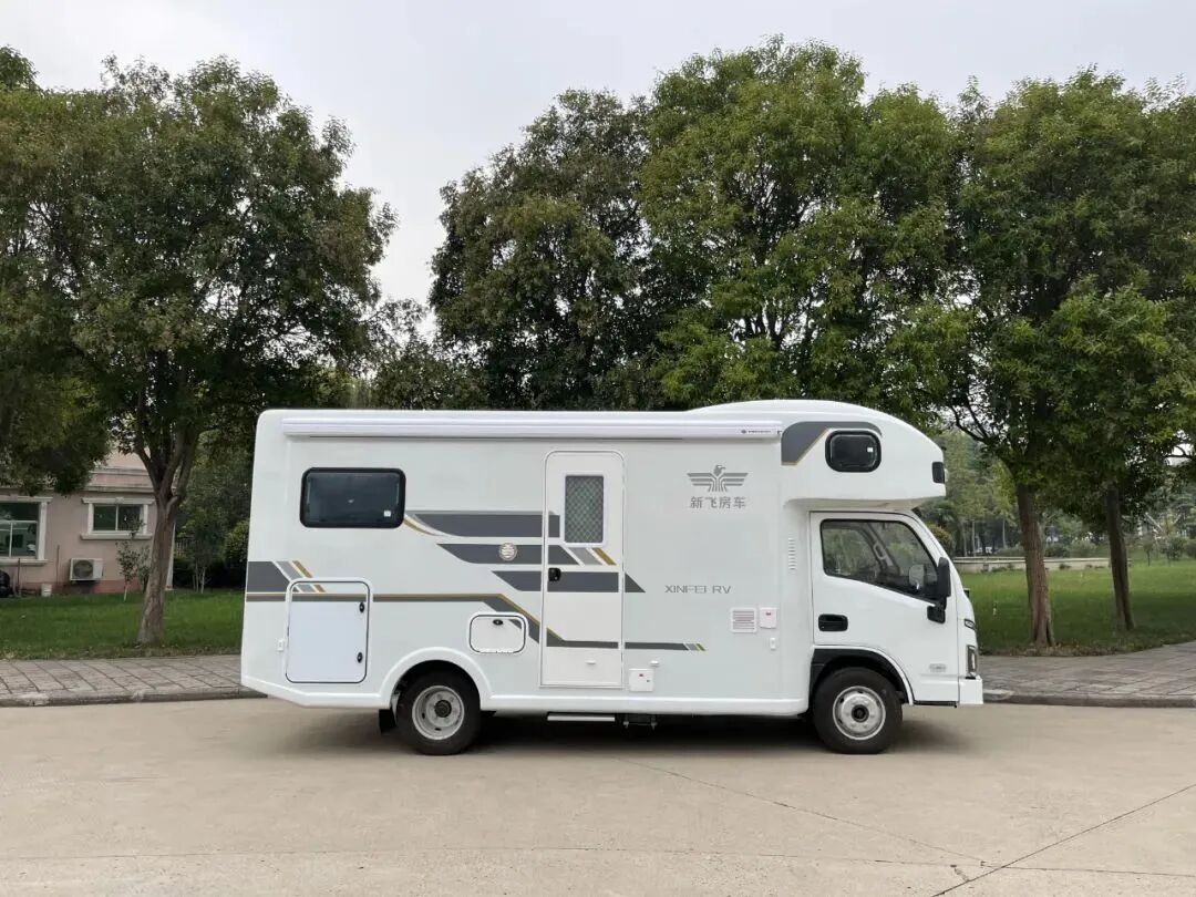 新飞S100后门款房车上市后,赢得了许多车友们的青睐,独立厨房的设计获赞不断,但美中不足的就是没有固定床位的设计,这也许多车友犹豫;因此新飞房车又出了这款新飞S100中门款房车,既保留了独立厨房,又有固定大床的全新布局,并且配置也进行了优化。