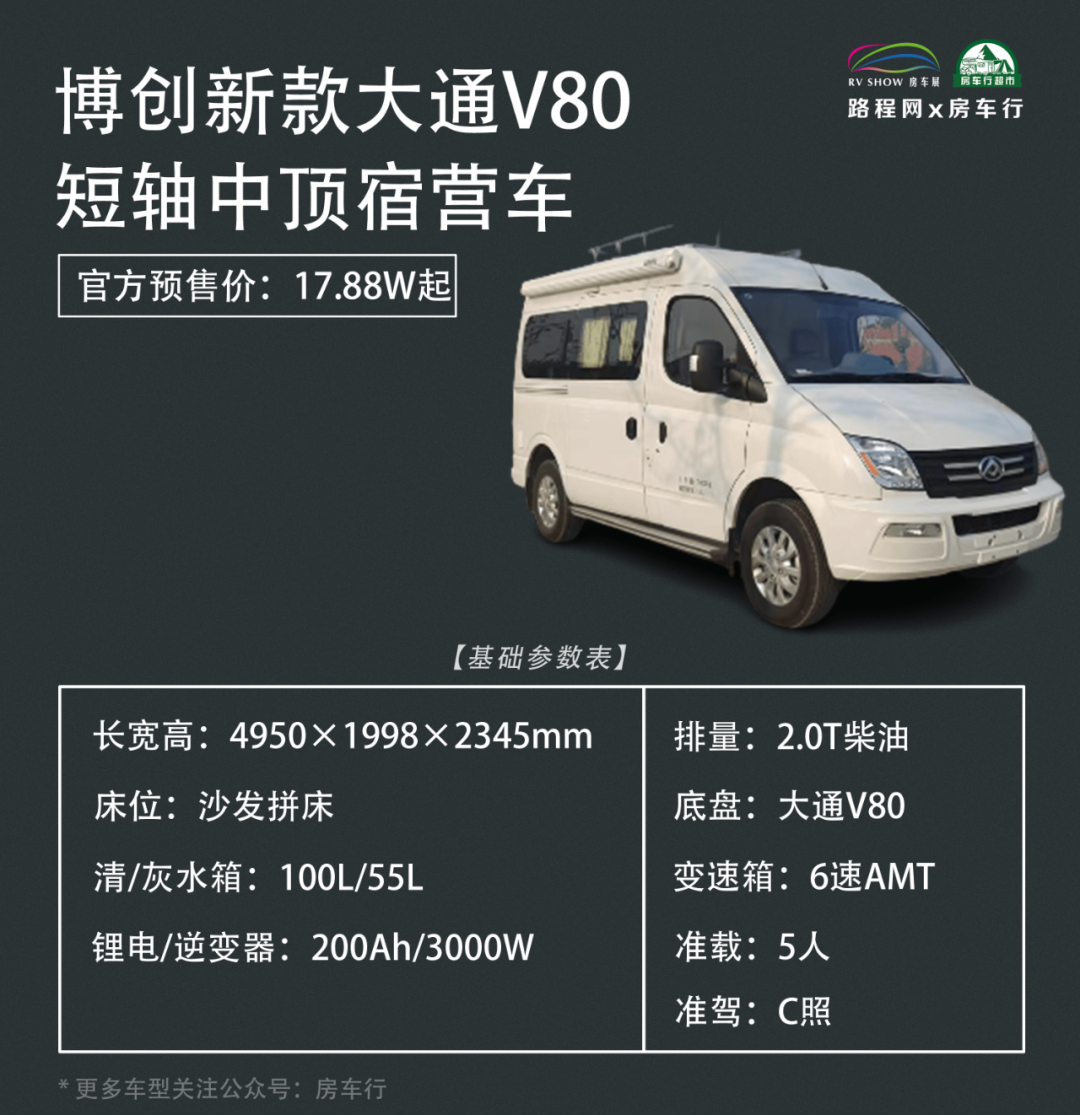 想要价格低,还要实用性强,更要满足短途旅行所需,不妨考虑下宿营车?今天小编给大家带来的这款宿营车,是由博创房车基于大通V80短轴中顶底盘所打造,官方预售价17.88W起,具体表现如何?一起来看!