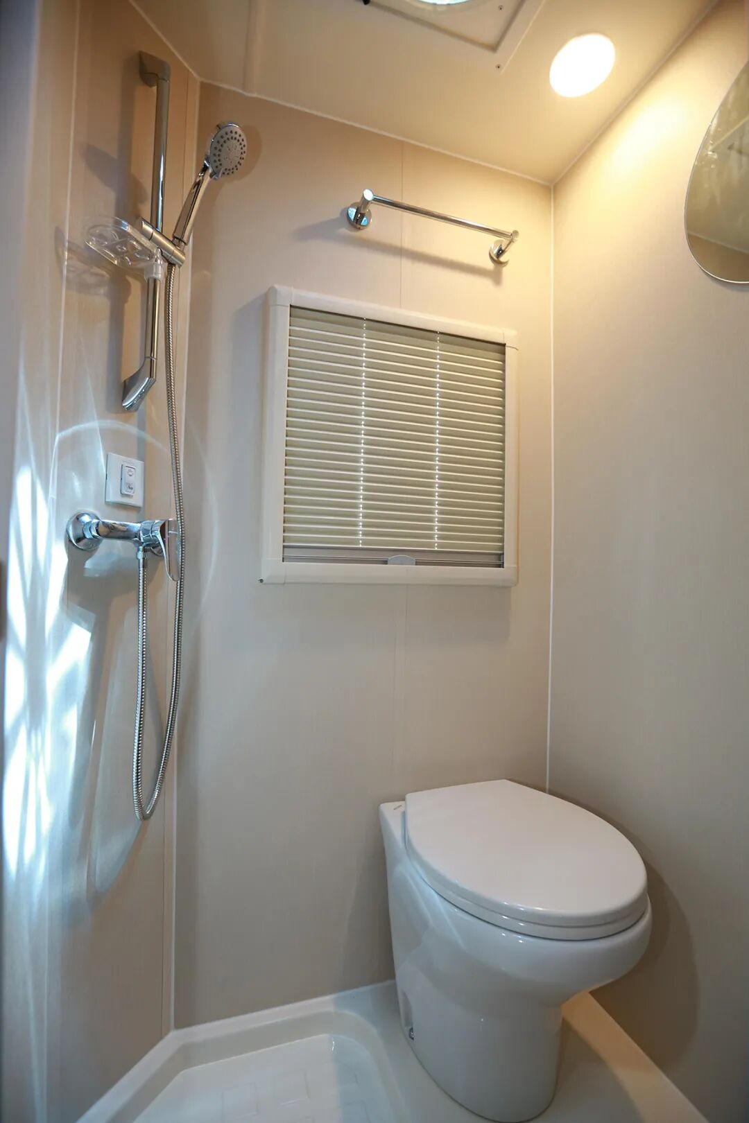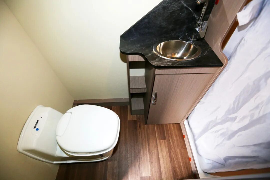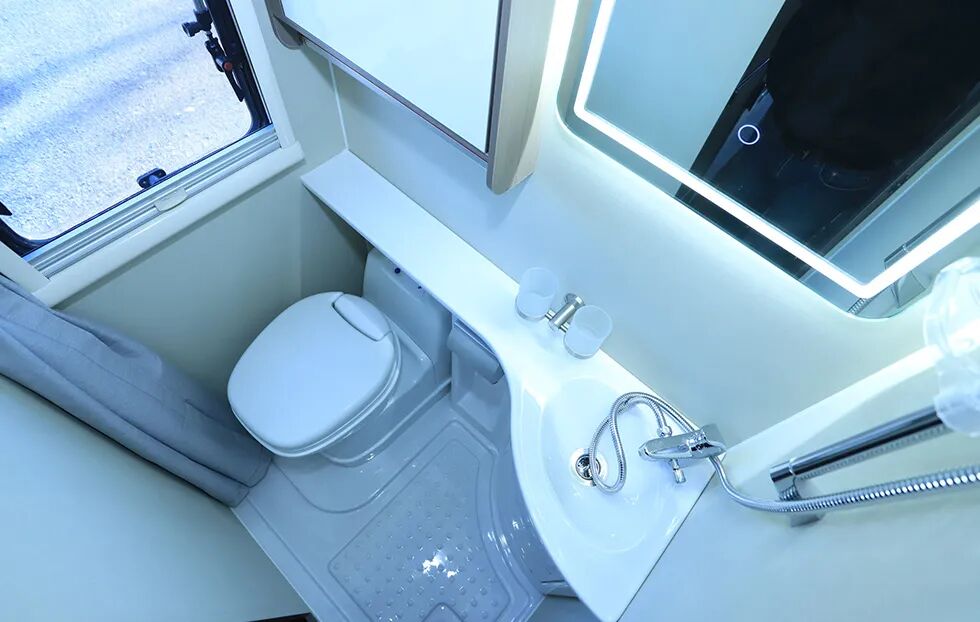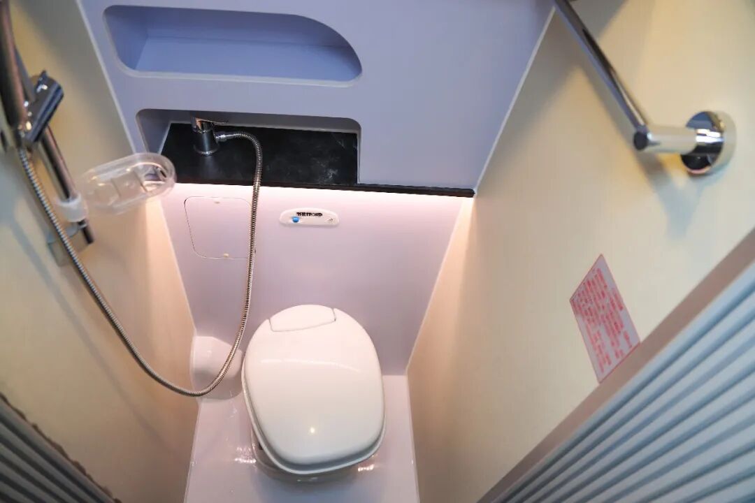 T511H拖挂提供了多种内饰布局可供选择,本次为大家展示的是卫浴间干湿分离的布局;