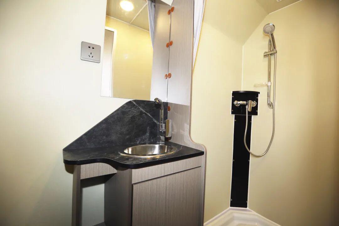 水电标配120L清水箱、60L灰水箱、225AH铅酸电池x2(400/800AH锂电池可选装)、220V插座、外接220V电源接入口、3KW充逆变一体机等;
