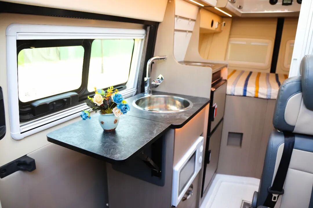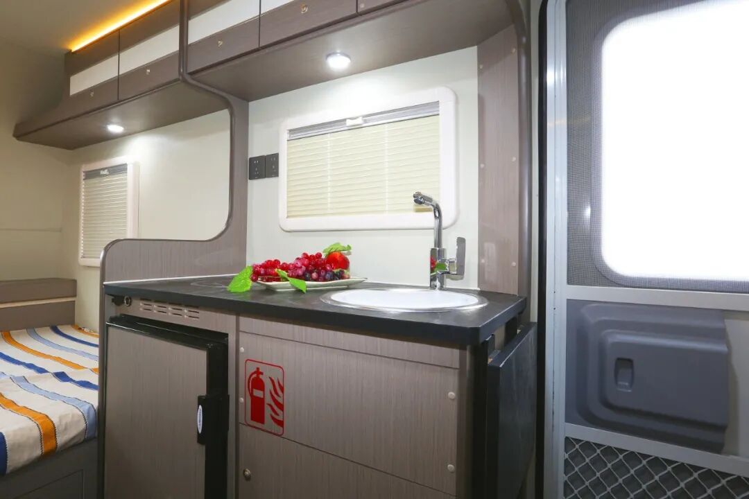 水电配置90L清水箱、50L灰水箱、225AH免维护铅酸电池、2KW充电逆变一体机等;