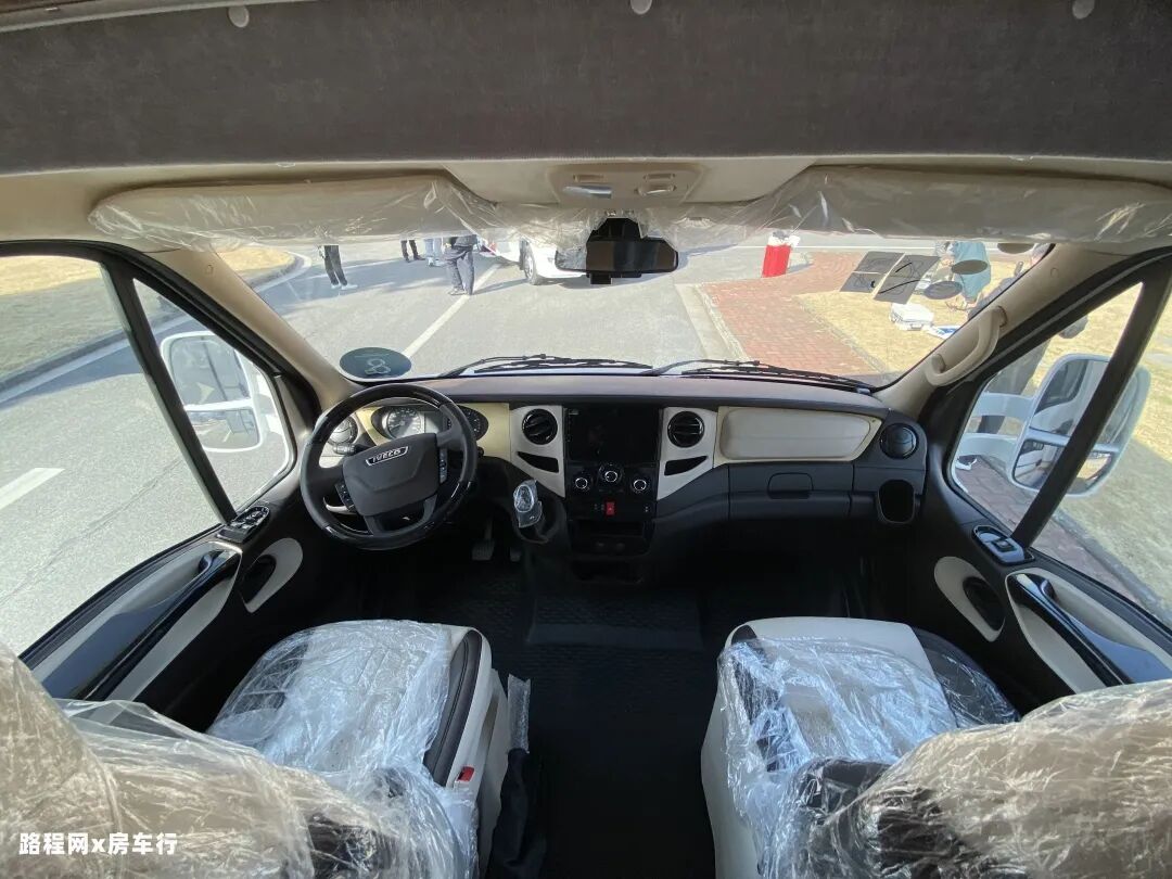 副驾驶双人座椅,核载人数更多;整车基于依维柯欧胜底盘打造,搭载3.0T柴油发动机,匹配8AT自动变速箱,国六排放标准,最大功率123KW,峰值扭矩400N.m;