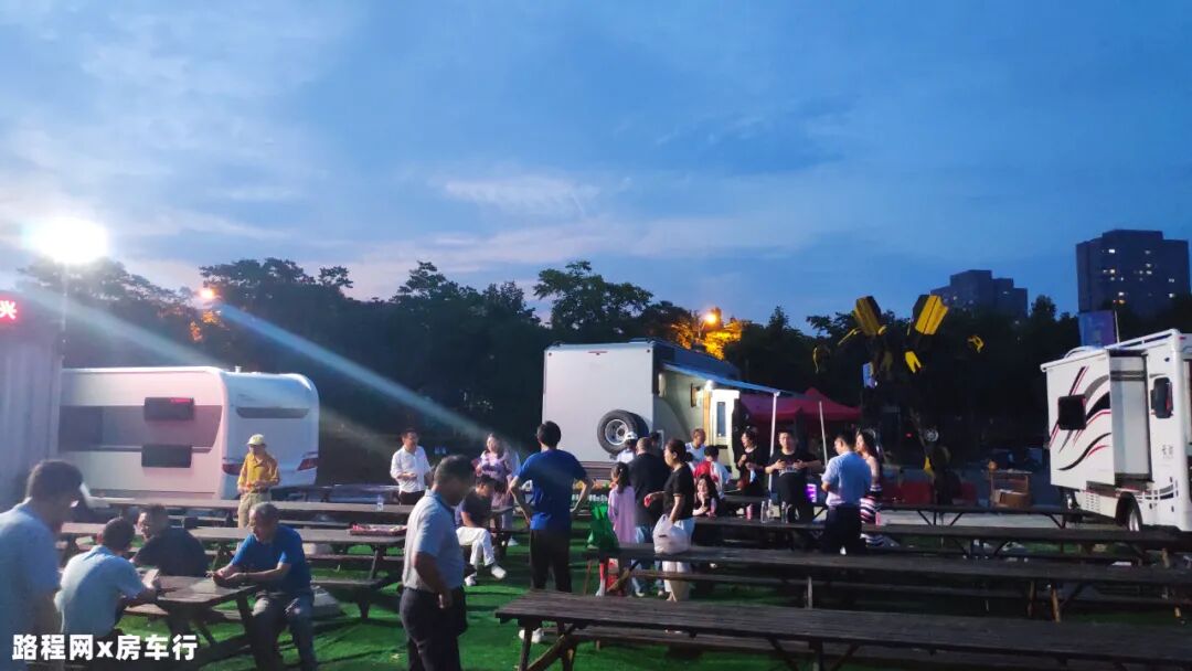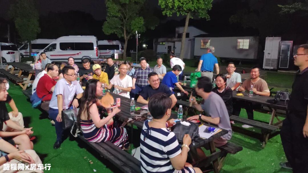 房车夜话的分享时间定于晚7点30分开始,暮色渐晚,夜色浓郁,参与夜话会的嘉宾们也陆续到达现场,三三两两的聚在一起交流,现场热闹非凡;