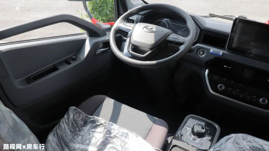 动力方面整车基于上汽跃进H500轻卡底盘打造,当然,满足国六排放标准是必须的;搭载上汽2.8T柴油发动机,120L油箱,动力充沛,续航持久;同时匹配马瑞利AMT旋钮式6速自动挡变速箱方便驾驶;并随底盘配置前后钢板弹簧悬架系统;