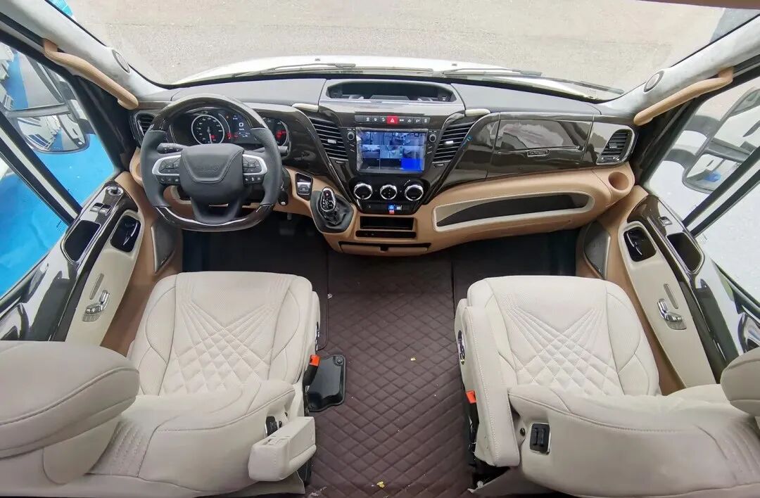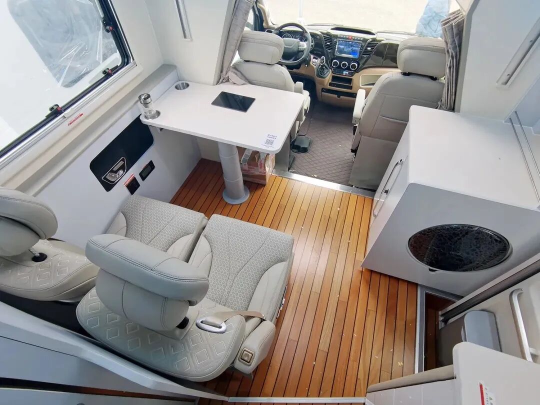 整车车身外尺寸为5990×2364×3220mm,荷载4人,蓝牌C照即可驾驶;车身选用三明治复式结构,同时航空铝合金外墙板的使用使整车保温、隔热的性能有了显著提高;动力方面,这款房车在满足国六排放标准的进口依维柯NEW DAILY底盘基础上打造而成,搭载一台3.0T涡轮增压发动机,同时匹配HI-MATIC 8AT变速箱,180马力,430N·m扭矩,驾驶体验更好,可适应大多数行车场景;