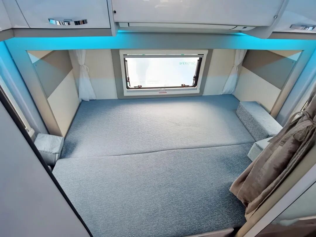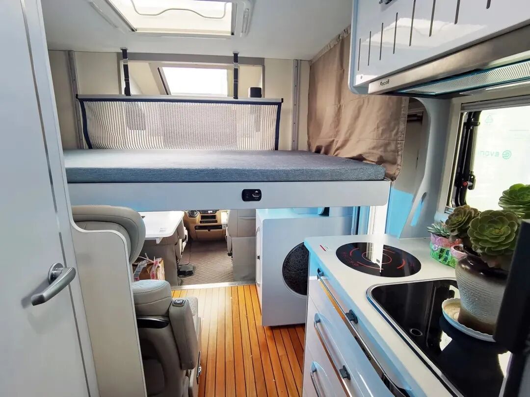 额头床的取消并不意味着休息区会减少,2021款大白鲨房车在会客区上方设计了一张电动升降双人床,升降开关位于升降床侧边的位置,驻车休息时简单操作即可享受安逸睡眠;