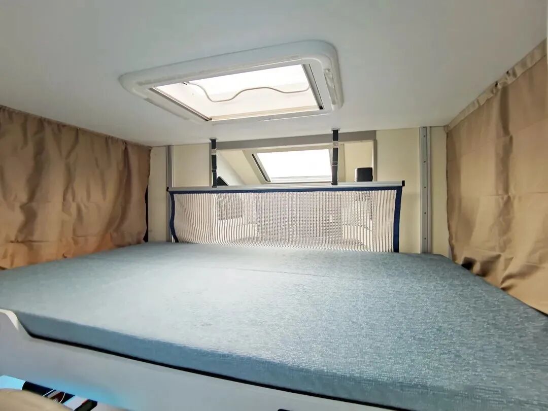 电动升降双人床上方配有大天窗,搭配额头床的天窗,日常车内采光、通风都是相当的充足,同时也能营造良好的睡眠氛围;