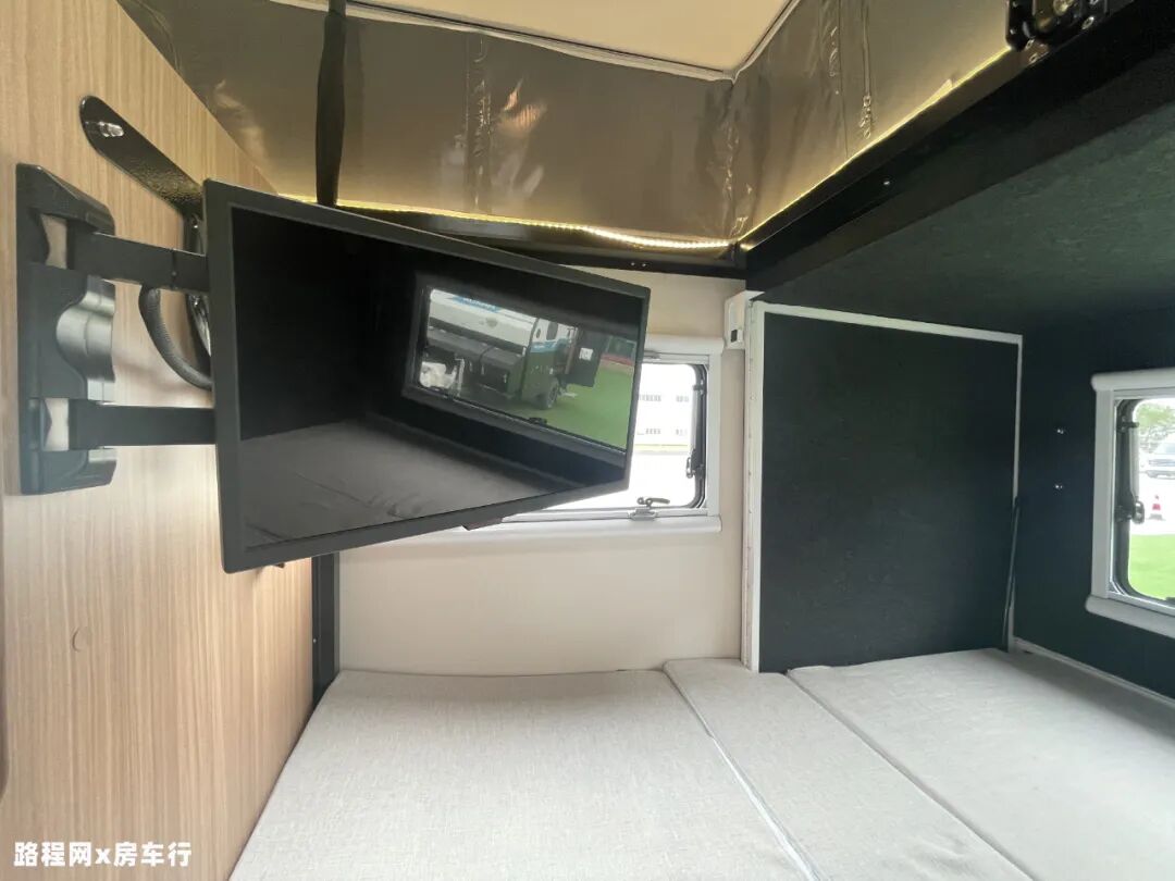 双人床侧前方可选装一台24寸液晶电视,角度、方向可调,方便日常观影、娱乐,而在实际体验中感觉还是很实用的;