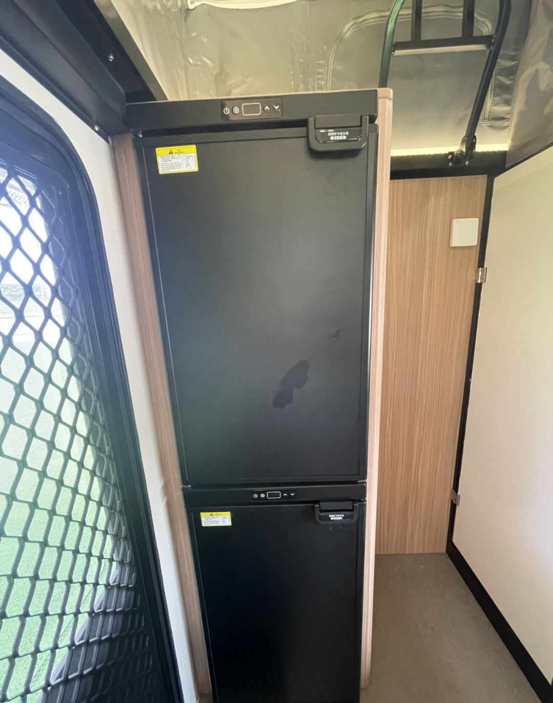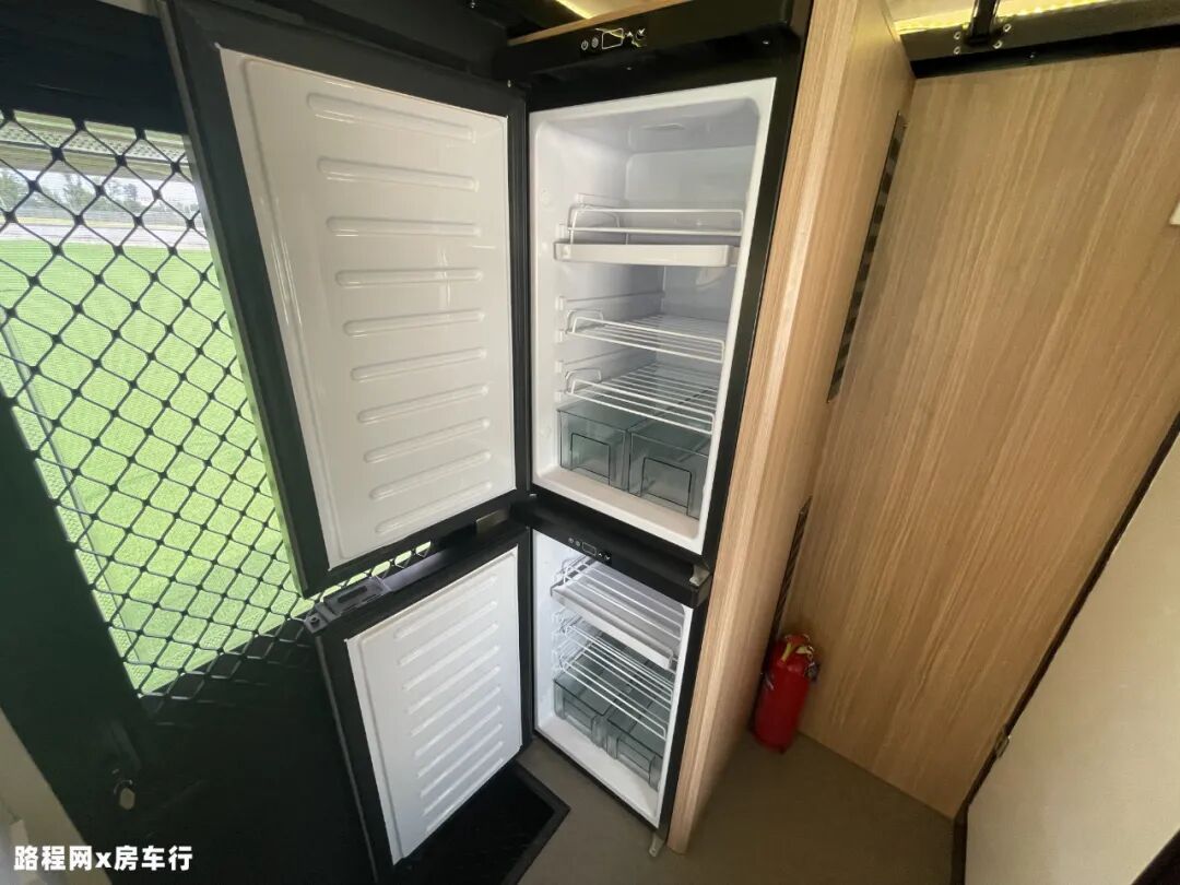 厨房操作台侧方,与乘客门相邻的位置搭载了一台152L的车载冰箱,超大容量可储存更多食材,满足长途旅行时的使用需求;