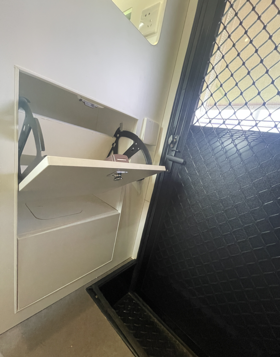 乘客门位于左侧,进入车内后,侧方底部的位置设有鞋柜方便换鞋;