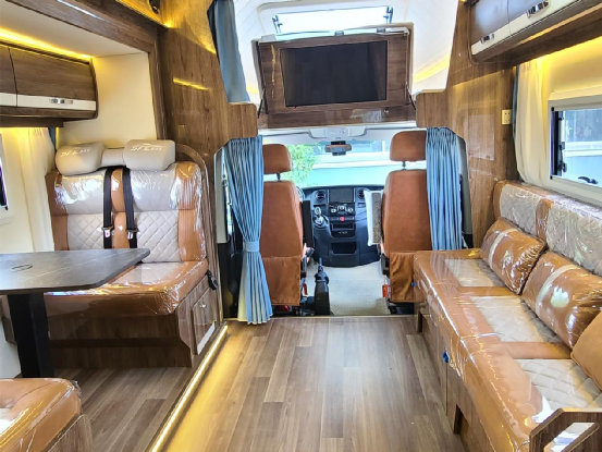 依维柯欧胜底盘打造,符合国六的排放标准,具备ESP 、倒车雷达、定速巡航、胎压监测等功能,同时搭载3.0T柴油发动机,8AT自动挡变速箱,以及150A+150A双发电机,整车尺寸 5995*2530*3150 ,核载4-6人,蓝牌C本就可以驾驶!