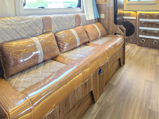 后开门设计,让车厢内的空间得以全部利用,会客厅与室内厨房的划分更加明显,整体宽阔通透,活动空间大,生活更加随意自如!