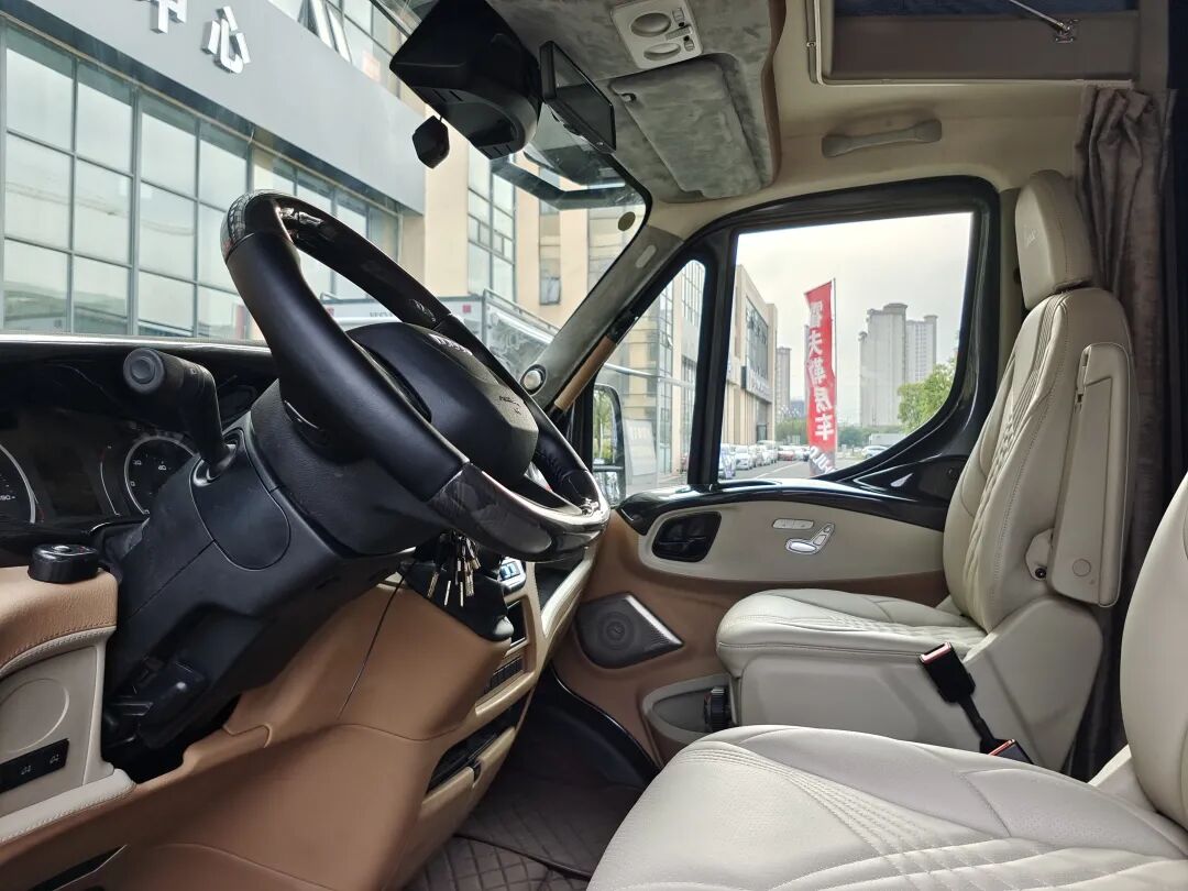 主副驾位置均配备安全气囊、侧气囊,座椅采用空气悬挂电加热三向调节座椅,可以改善冬天座椅过凉造成的乘坐不舒适感。此外,驾驶室还配有电动车窗、自动空调、遥控中控门锁、电动加热后视镜、GPS导航一体机等辅助驾驶。