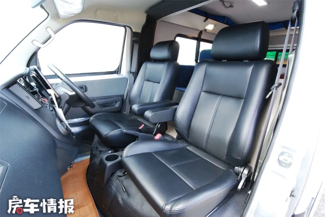 进入车内,驾驶室座椅都带扶手,材质比较讲究,都是真皮材质的商务座椅,比较豪华,乘坐起来也更加舒适。