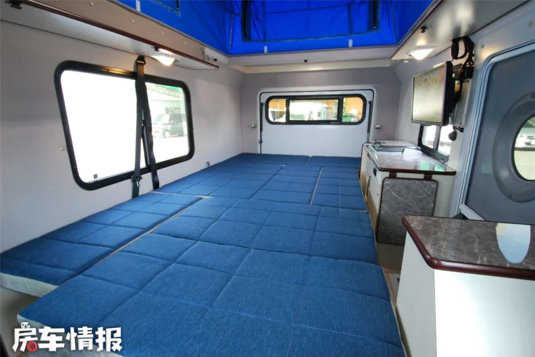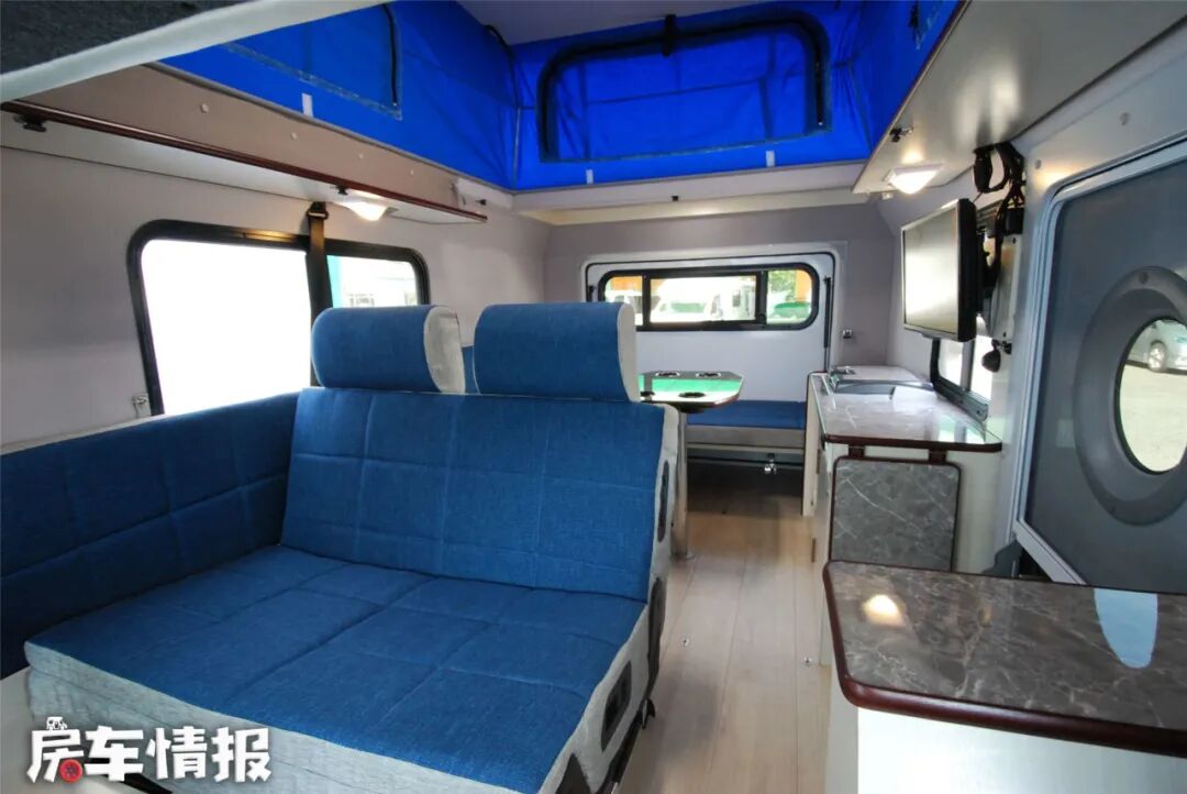 弹出式车顶的设计,增大了车内可利用空间,全尺寸的升顶设计和国内常见房车的半升顶,是不太一样的。这样的弹出式车顶,能保证车顶床前、后高度一致,在车顶床休息时不会感到太压抑。这种设计在国内房车还没见过,大家见过吗?(欢迎评论区给小编扫盲...)