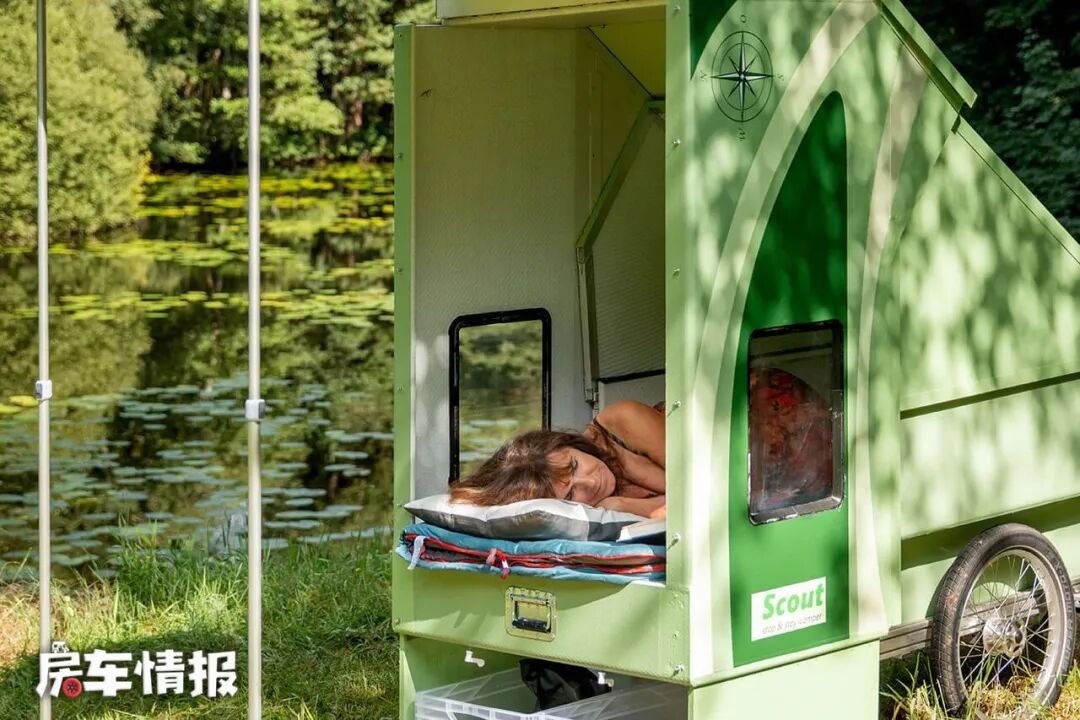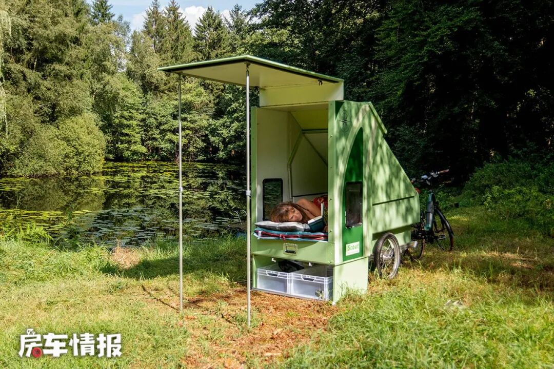 一个人骑着自行车拖着这辆小车,在周末找个安静的小湖边或者树林里,躺在车内看书、休息甚至是发呆,想想还挺令人向往的。